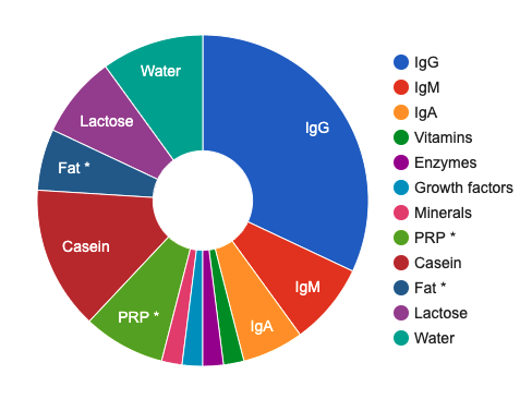 - In particular it contains fats, proteins, complex fat-soluble vitamins, sacharids promoting intestenal microflora development, group of growth factors and other substances